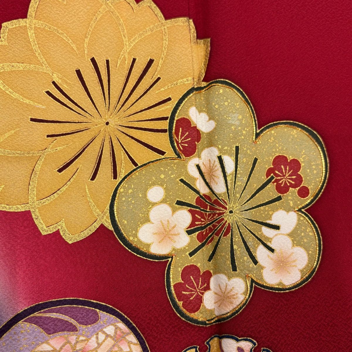 振袖 身丈165cm 裄丈65.5cm M 袷 梅 雪輪 金糸 金彩 赤 正絹 秀品の検索結果