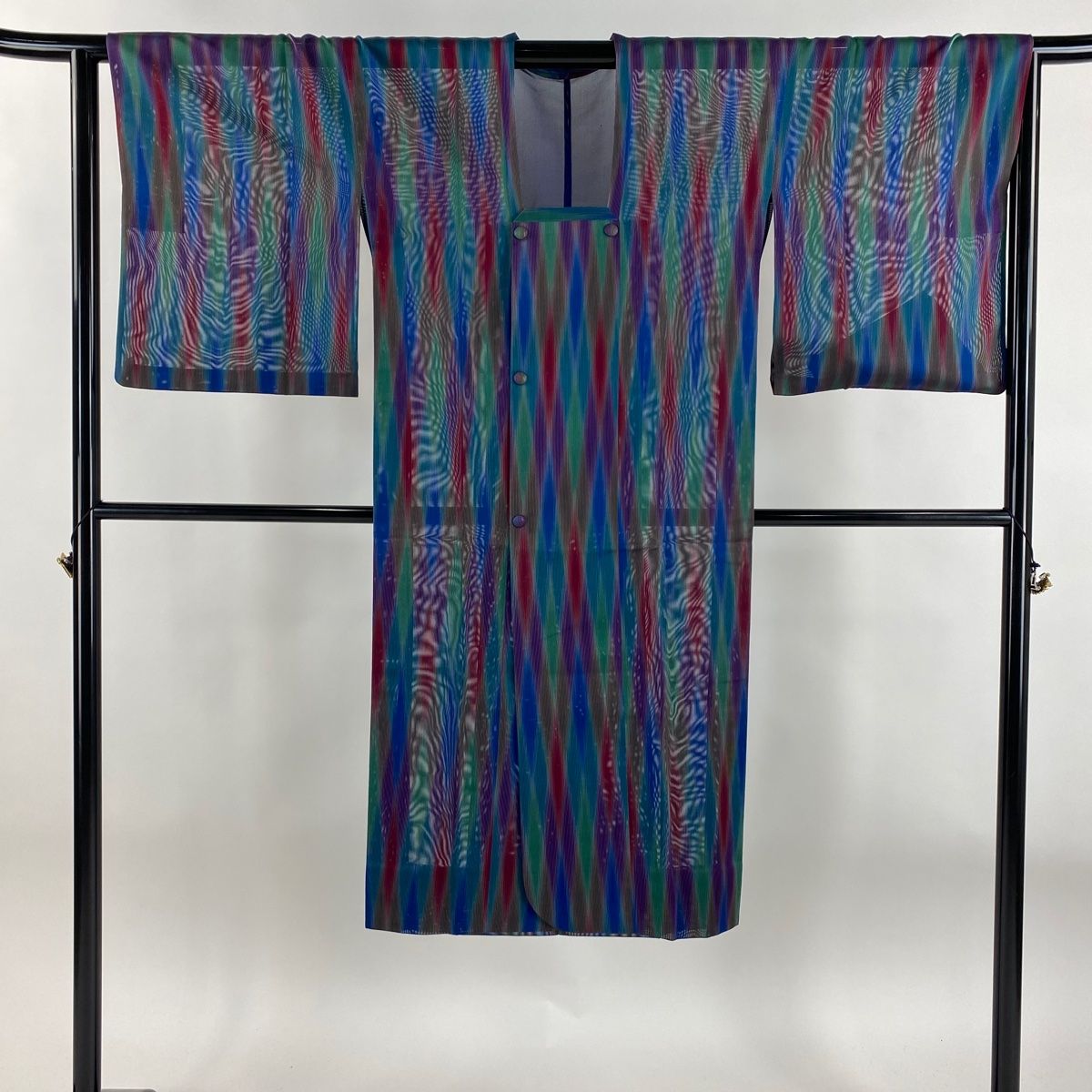 道行 身丈128cm 裄丈65.5cm M 和装コート 角衿 幾何学 縞 青 正絹の検索結果