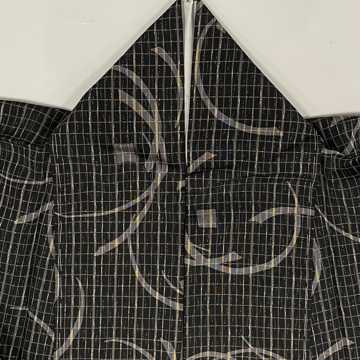 小紋 身丈165cm 裄丈70cm L 袷 紬地 幾何学模様 格子 黒 正絹 名品の検索結果