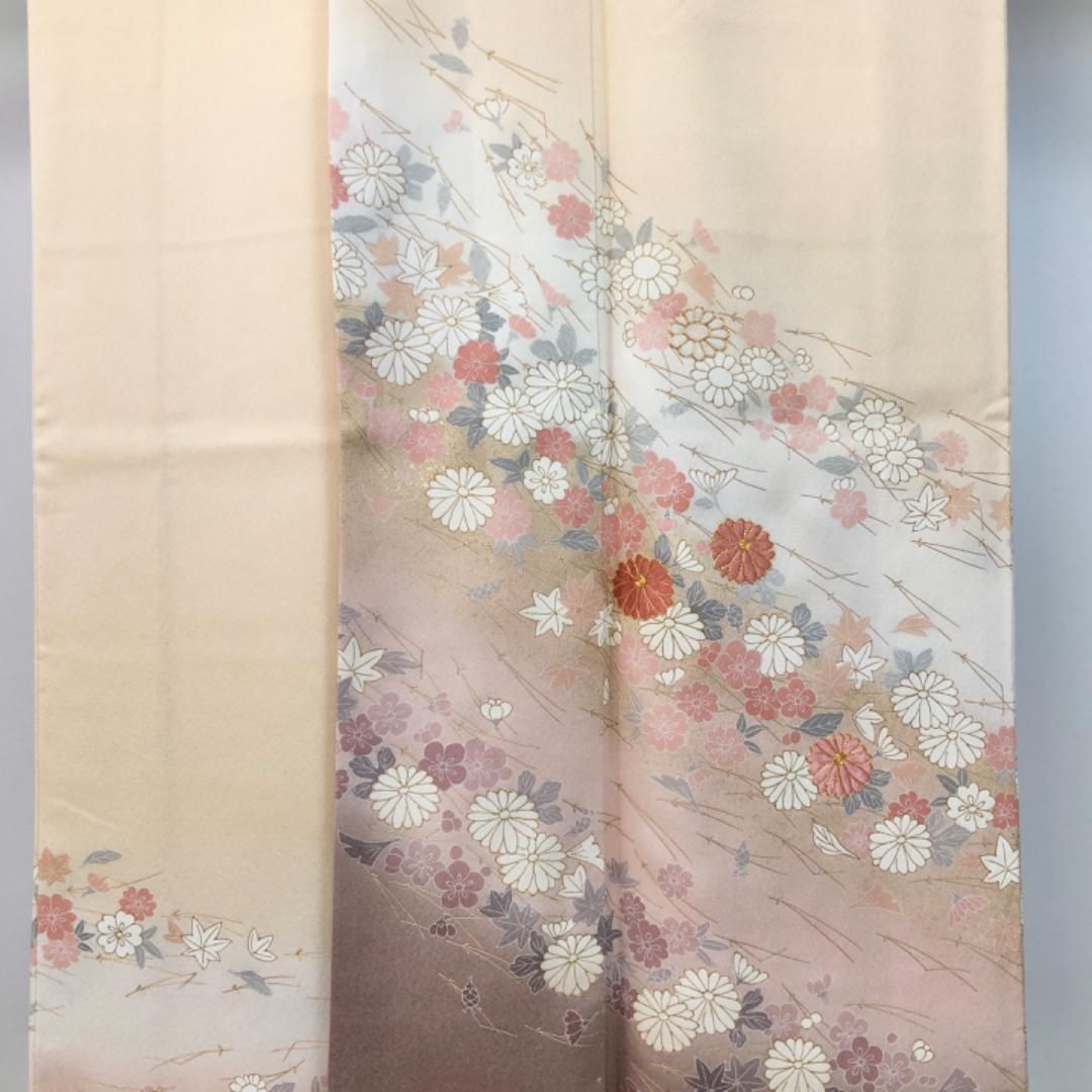 付下げ 身丈160.5cm 裄丈66cm M 単衣 御所車 松竹梅 刺繍 ベージュ 正絹 秀品