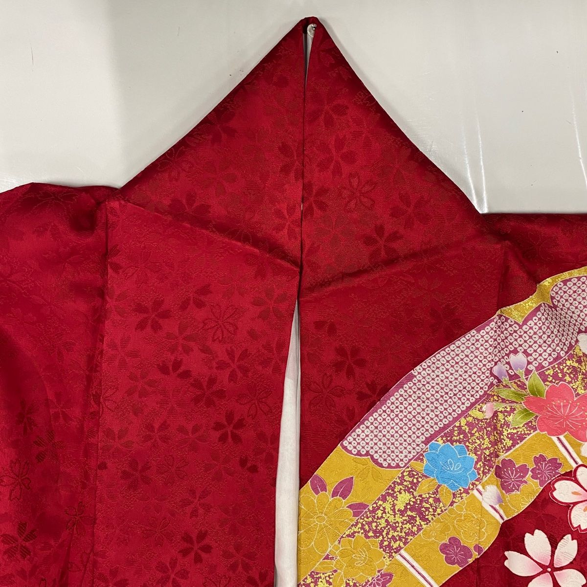 振袖 身丈169.5cm 裄丈67cm M 袷 草花 桜 銀通し 金彩 赤 正絹