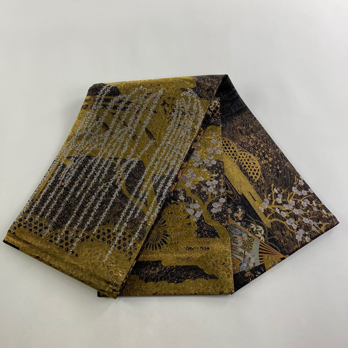丸帯 桃山百双屏風文 橋 金糸 箔 墨色 お太鼓柄 正絹 WWW_GLOBALQUALITYIMPORTS_COM