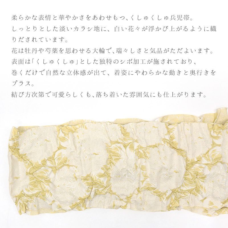兵児帯 くしゅくしゅ イエロー 源氏物語 大人 へこ帯 浴衣 着物 大人の兵児帯 イエロー地 華やか牡丹 黄色 くしゅくしゅ兵児帯 -里362-10012177の検索結果
