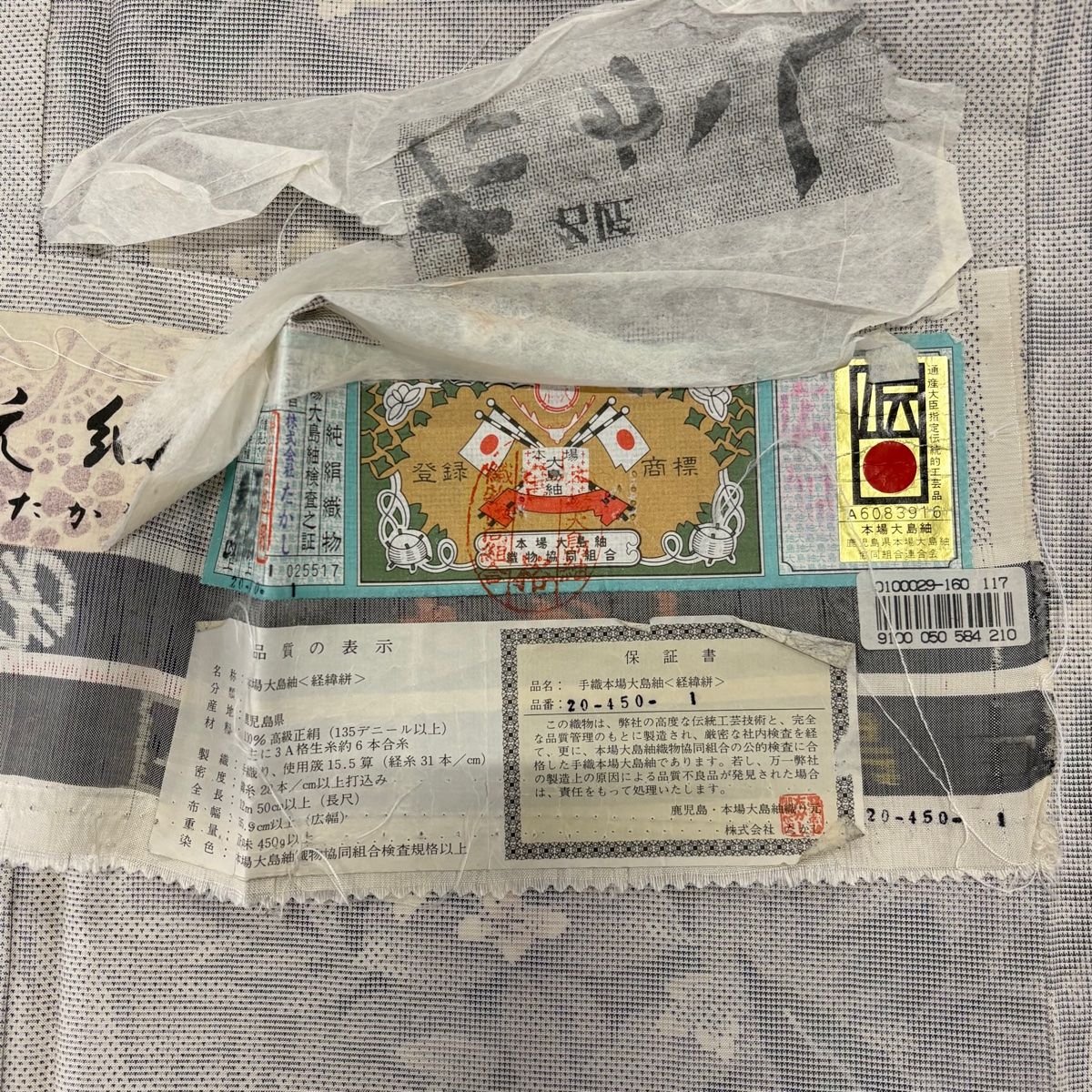 大島紬 身丈162cm 裄丈64cm M 袷 名匠たかし しろたえ紬 証紙 草花 灰色 正絹 WWW_GLOBALQUALITYIMPORTS_COM