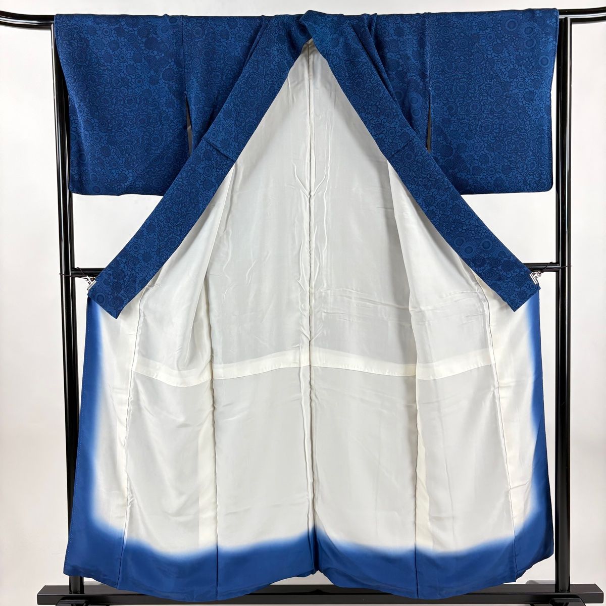 小紋 身丈153cm 裄丈66.5cm M 袷 阿波本場藍染 菊唐草 縮緬 藍色 正絹 秀品 WWW_GLOBALQUALITYIMPORTS_COM