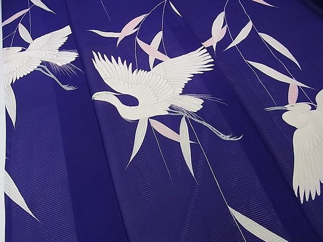 平和屋本店 上 夏物 セミアンティーク 大正ロマン 訪問着 絽 白サギ 枝垂れ柳 紅桔梗色地 銀彩 DZAA0271kh4 WWW_GLOBALQUALITYIMPORTS_COM