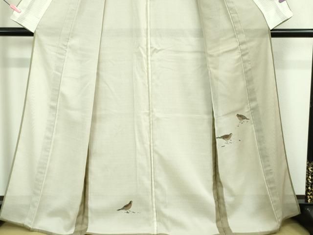 平和屋着物 上 訪問着 無双 紗袷 紗×紗 手描き 笹竹に雀 空五倍子色地 DZAA8423kh5 WWW_GLOBALQUALITYIMPORTS_COM