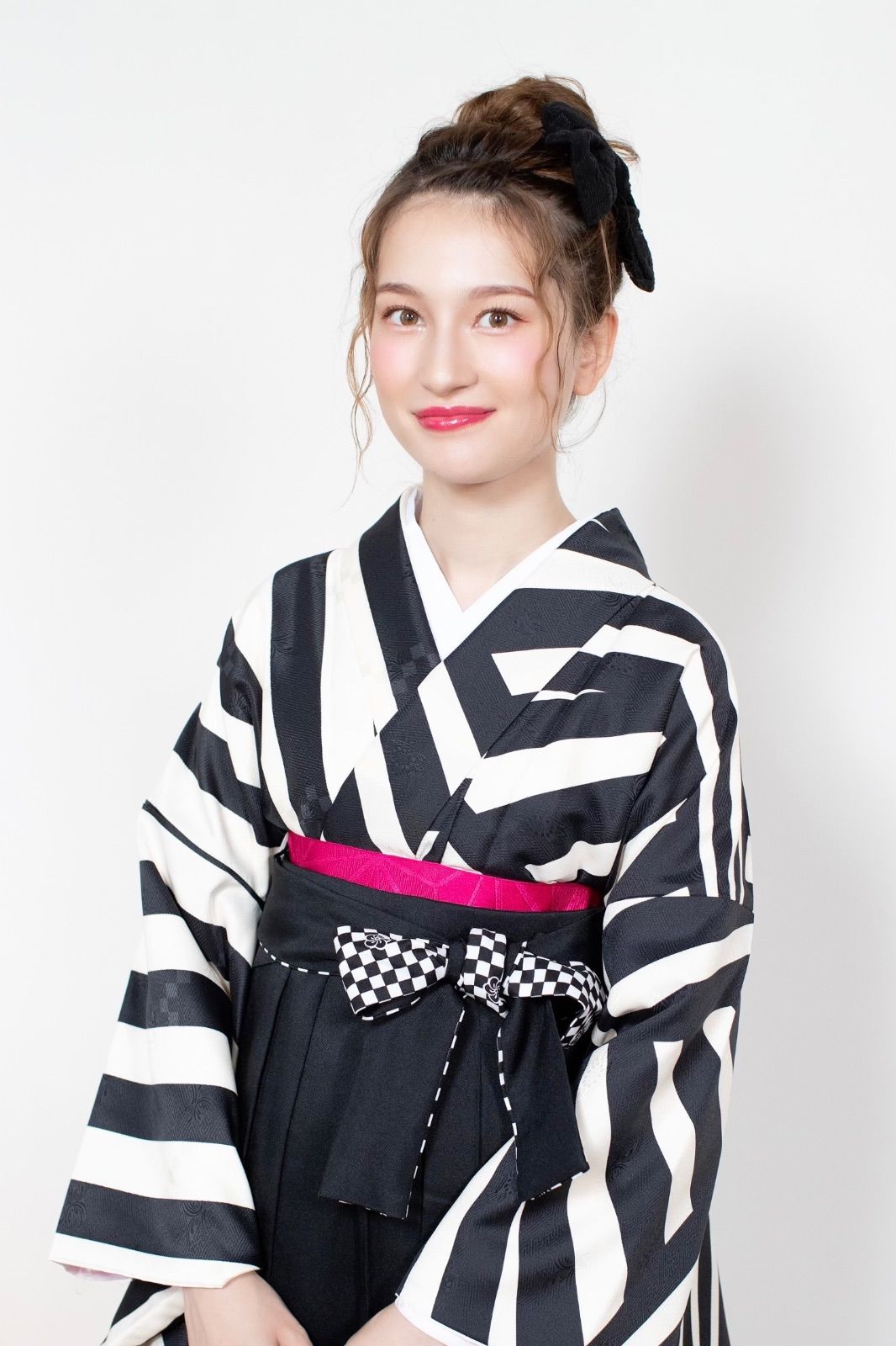 着物ジェンヌ 卒業式袴3点セット 幾何学模様とストライプ 二尺袖 袴 白黒×黒の検索結果