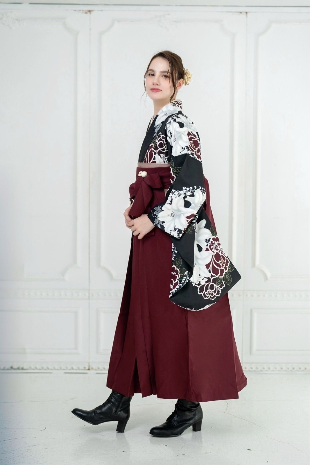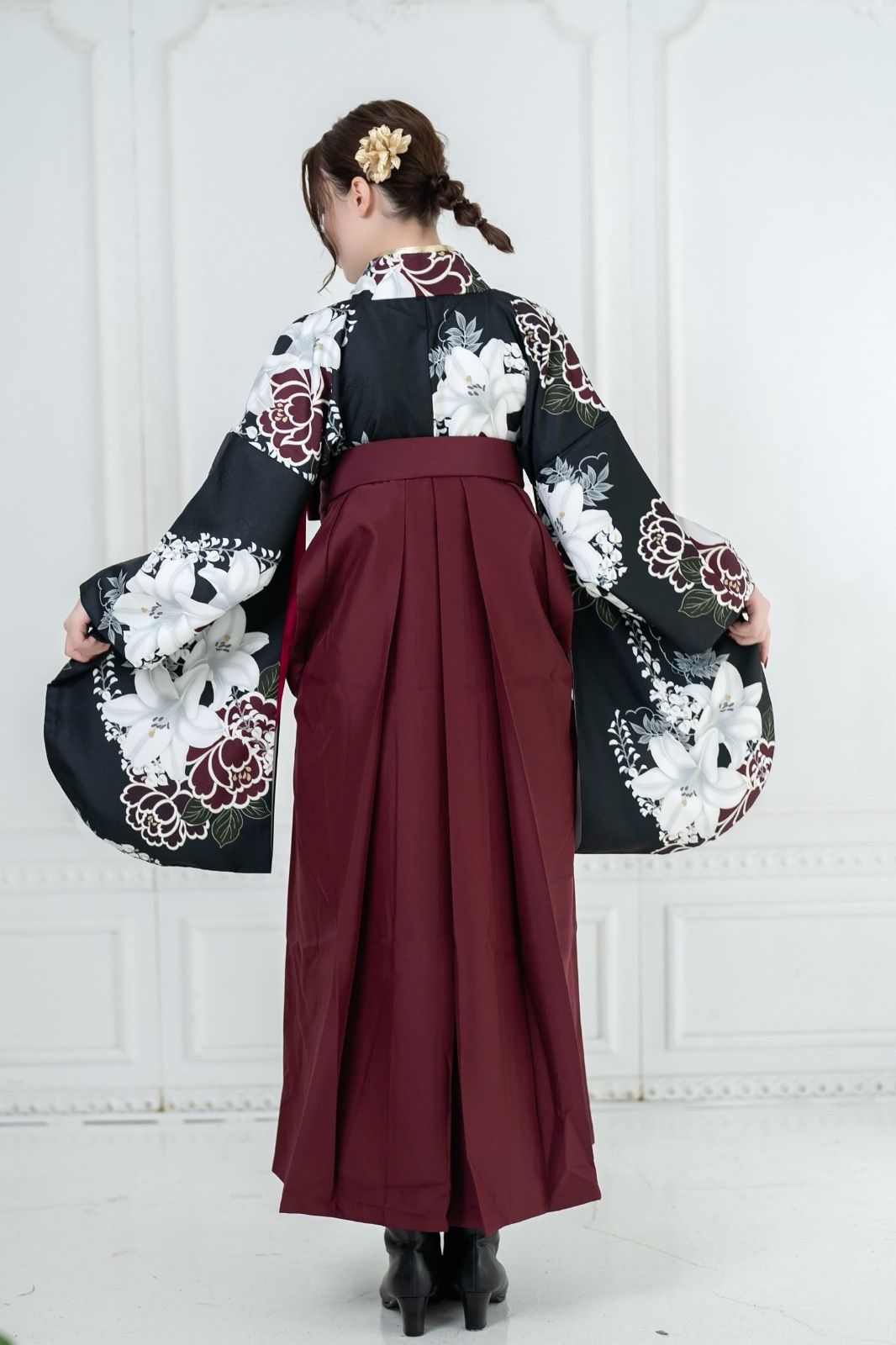 着物ジェンヌ 卒業式袴3点セット 黒 エンジ 古典柄 二尺袖 着物 袴 レディース袴 大学生 小学生の検索結果
