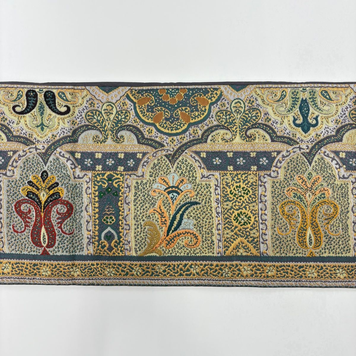 袋帯 秀品 落款 草花 幾何学模様 金糸 灰紫 全通 正絹 WWW_GLOBALQUALITYIMPORTS_COM