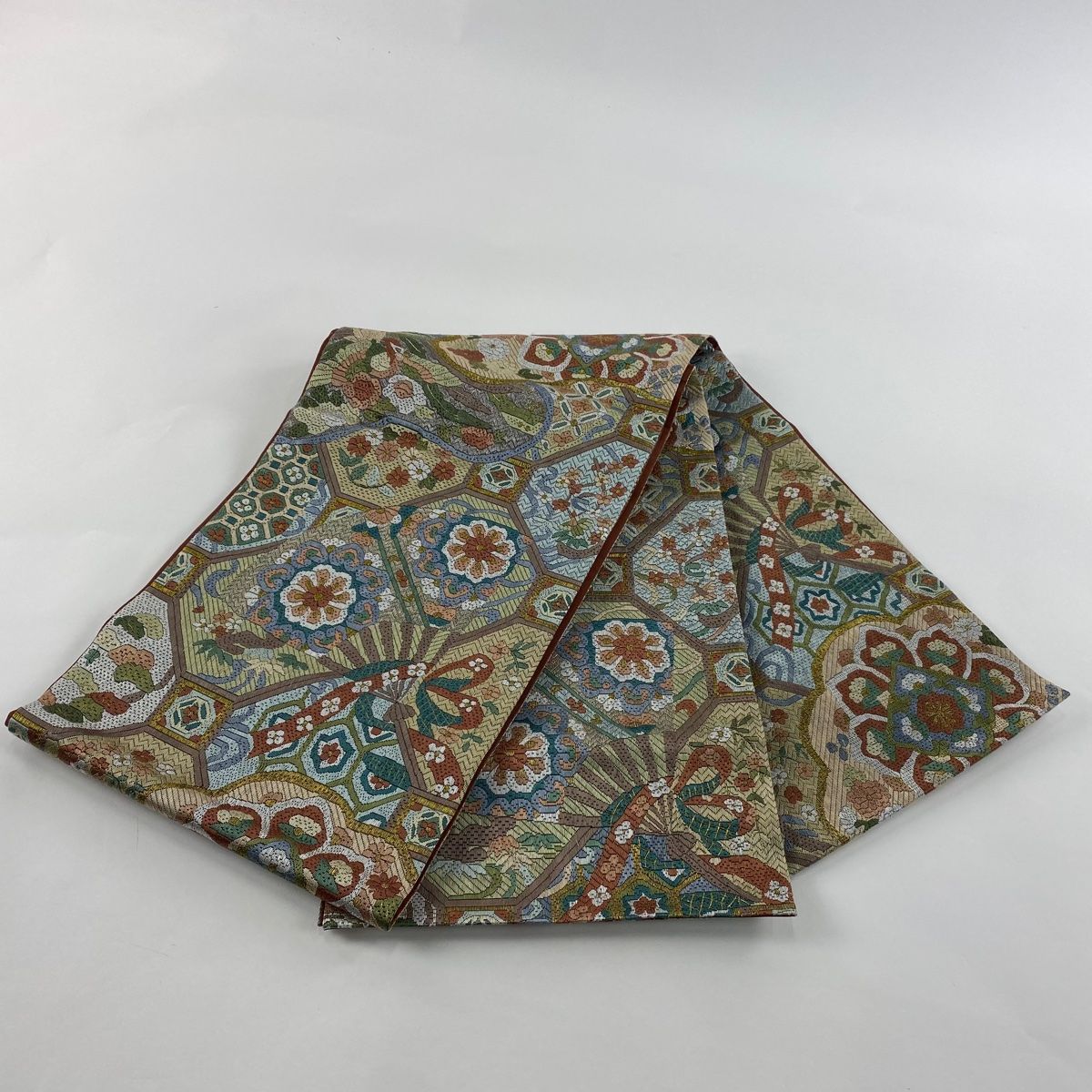 袋帯 華文 蜀江文 金銀糸 絽刺し 青灰色 全通 正絹の検索結果