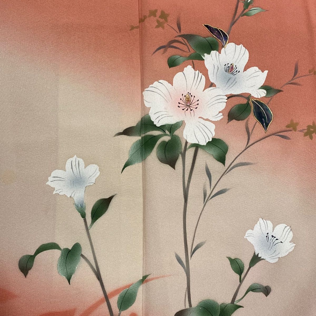 訪問着 身丈159cm 裄丈64cm M 袷 枝花 シルエット 螺鈿 金彩 サーモンピンク 正絹 秀品の検索結果