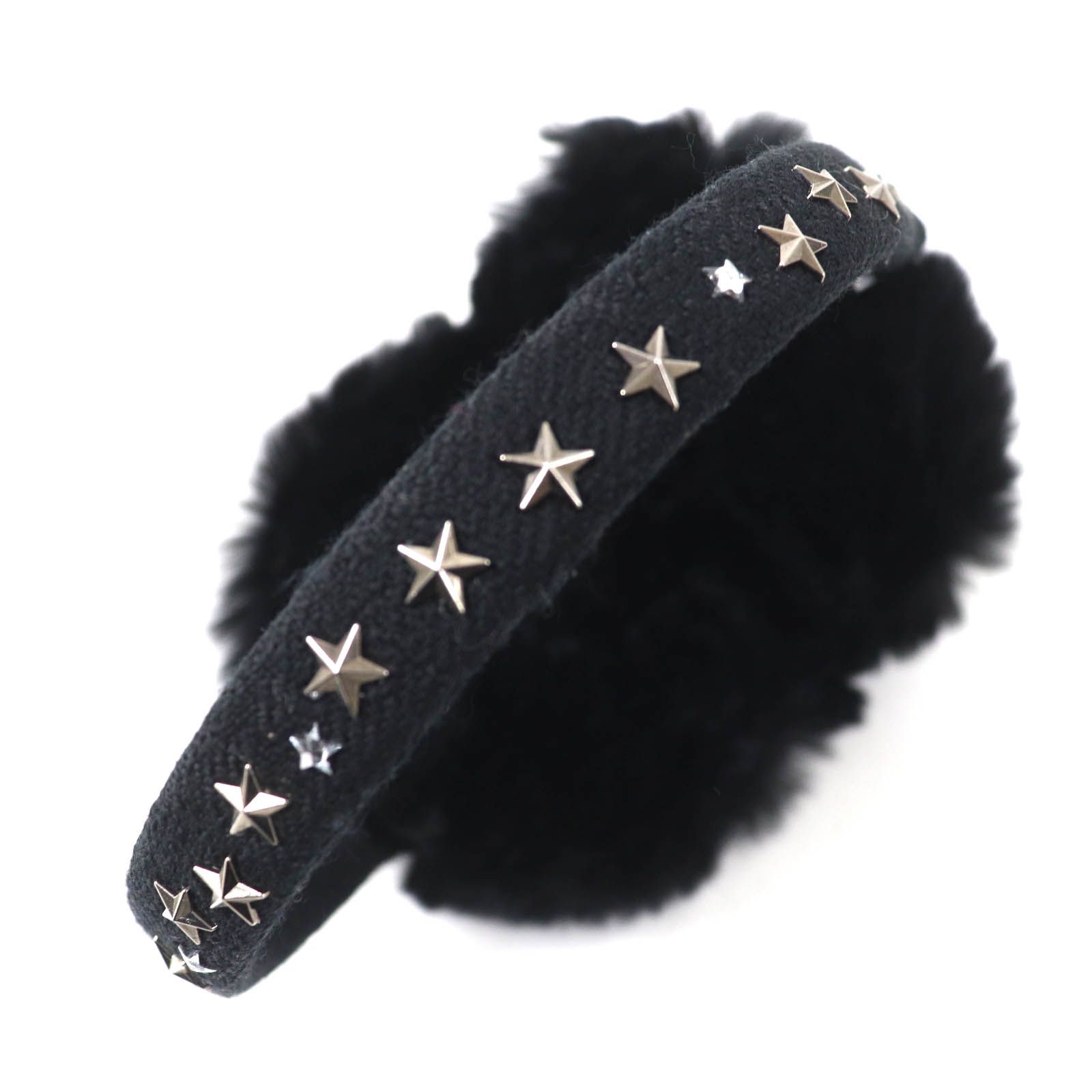 JIMMY CHOO ジミーチュウ スタースタッズ ロゴ入り エコファー 耳当て イヤーウォーマー イヤーマフ ブラック レディース WWW_GLOBALQUALITYIMPORTS_COM