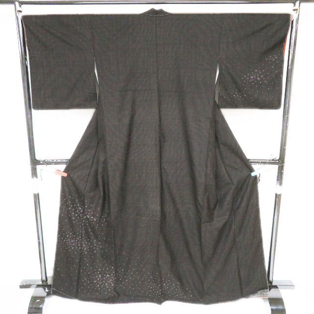 大島紬 着物 正絹 袷 セミフォーマル 幾何学模様 枡模様 黒色 茶系色 多色 身丈168cm 裄67.5cm L トール きもの北條 A1279-6 WWW_GLOBALQUALITYIMPORTS_COM