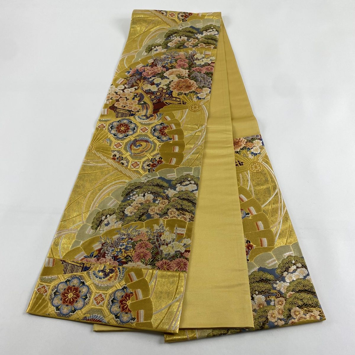 袋帯 秀品 関西仕立て 桃山秀花桧扇文 金糸 箔 金色 六通 正絹 WWW_GLOBALQUALITYIMPORTS_COM
