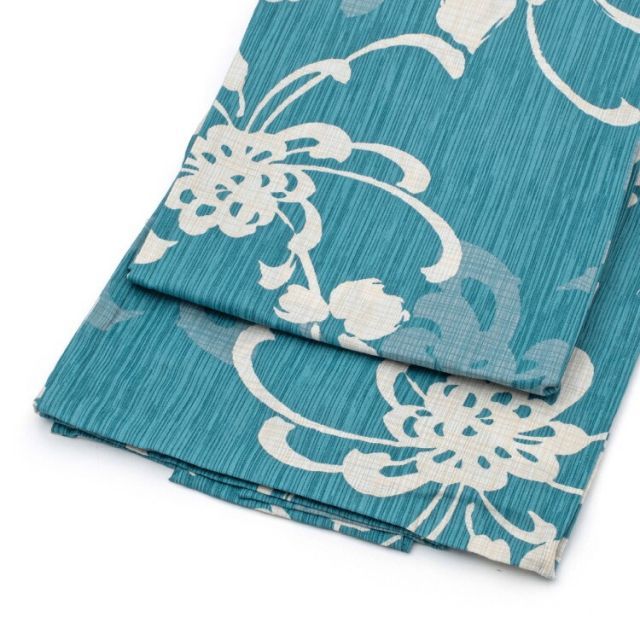 浴衣 レディース 女性用 Scena ターコイズブルー 青 青緑 綿 麻 夏 夏着物 夏小紋 花柄 ゆかた 仕立て上がり 洗える プレタ 販売 単品 yukata-00080 WWW_GLOBALQUALITYIMPORTS_COM