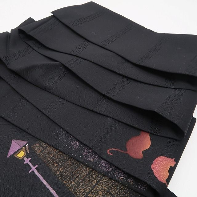 ❁tomihisa❁ 猫 着物 正絹 街灯に照らされる静寂の猫 なごや帯 7044 WWW_GLOBALQUALITYIMPORTS_COM