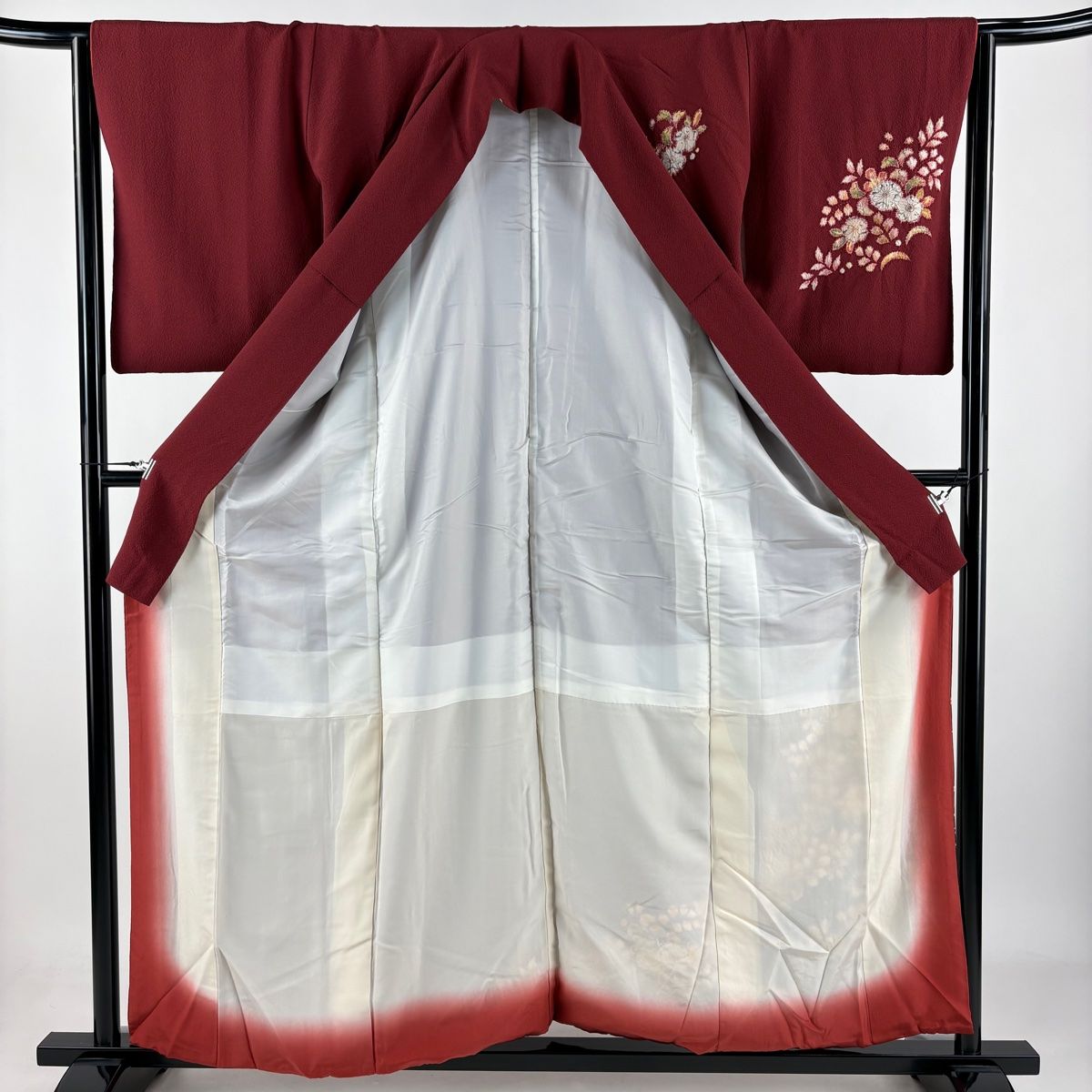 付下げ 身丈156.5cm 裄丈63.5cm S 袷 翠山工房 やまと 落款 辻が花 金彩 ぼかし えんじ色 正絹 WWW_GLOBALQUALITYIMPORTS_COM