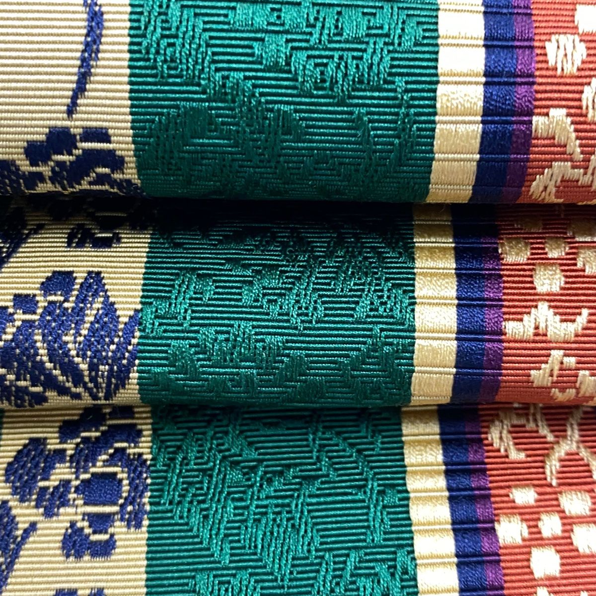 半幅帯 秀品 博多織 証紙 縞 草花 緑 正絹の検索結果