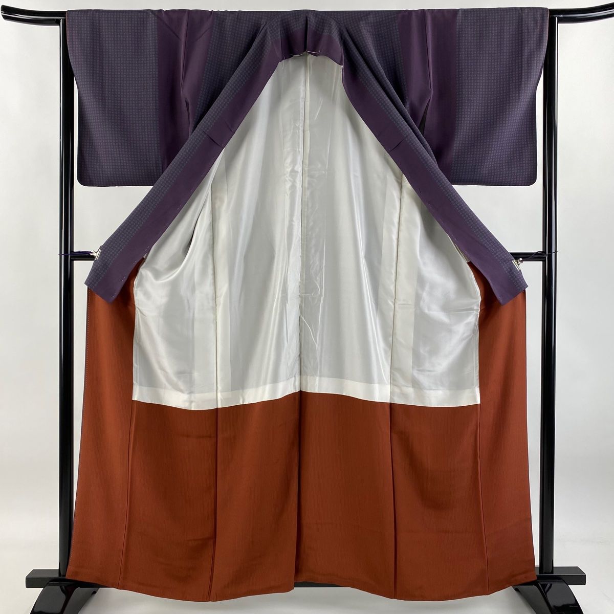 小紋 身丈159cm 裄丈64cm M 袷 袋帯セット 小花 縦縞 紫 正絹 秀品 WWW_GLOBALQUALITYIMPORTS_COM
