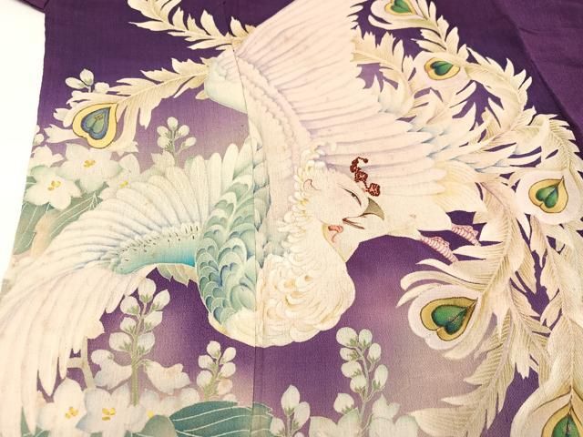 平和屋着物 アンティーク 大正ロマン 色留袖 孔雀草花文 暈し染め 正絹 AABA7857ph WWW_GLOBALQUALITYIMPORTS_COM