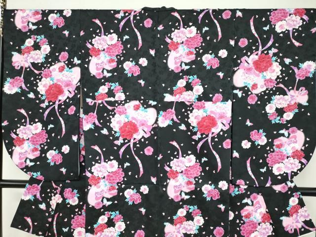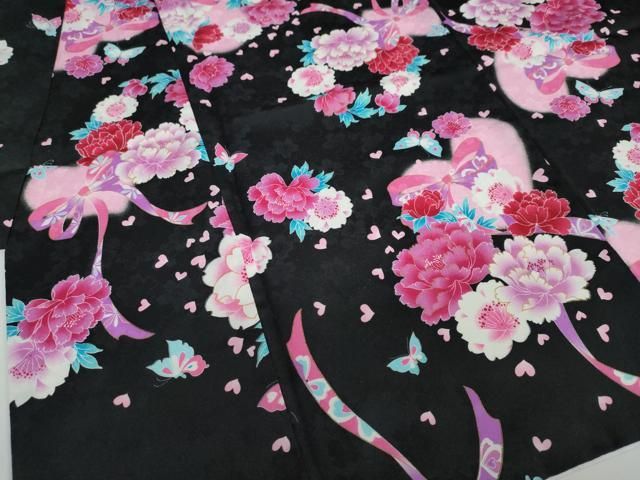 平和屋着物 anan ブランド 小振袖 二尺袖 長襦袢 無双仕立て セット 花蝶文 黒地 金彩 半衿刺繍 洗える着物 DAAW5665ud WWW_GLOBALQUALITYIMPORTS_COM