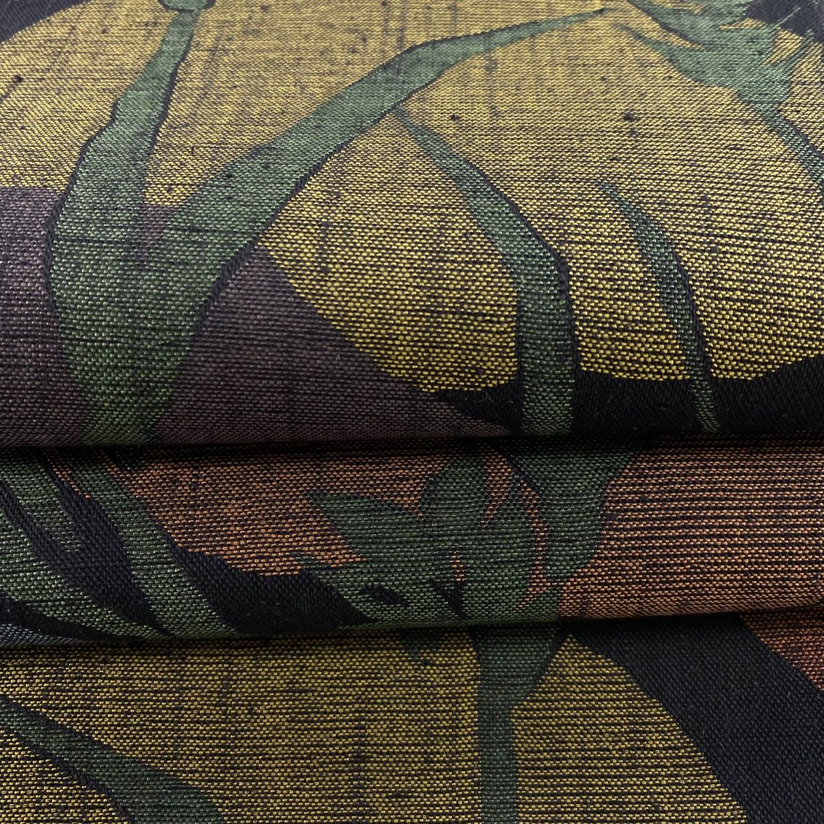 袋帯 となみ織物 落款 葉柄 幾何学 濃紺 六通 正絹 WWW_GLOBALQUALITYIMPORTS_COM