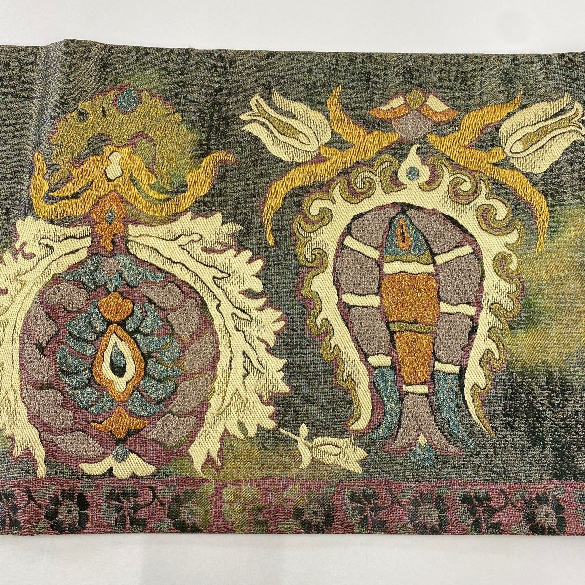 袋帯 草花 幾何学模様 金糸 箔 灰緑 お太鼓柄 正絹の検索結果