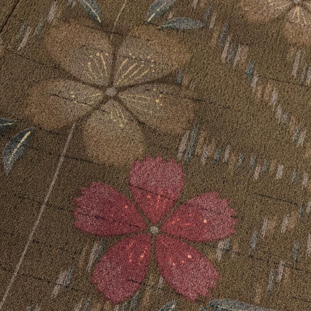 消炭黒色の落ち着いたお色味、麻の葉に花柄模様がデザインされた素敵な柄裄のお品でございます。