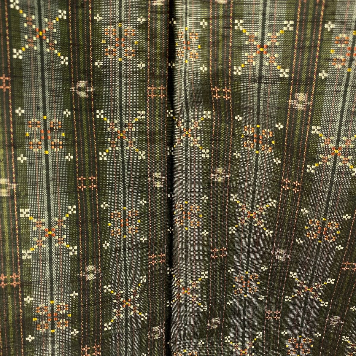 紬 身丈152cm 裄丈62cm S 袷 縦縞模様 幾何学模様 花織 深緑 正絹の検索結果
