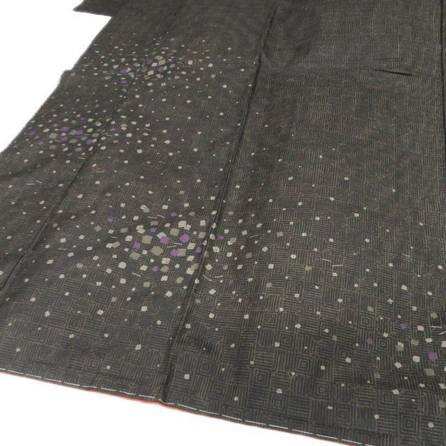 大島紬 着物 正絹 袷 セミフォーマル 幾何学模様 枡模様 黒色 茶系色 多色 身丈168cm 裄67.5cm L トール きもの北條 A1279-6 WWW_GLOBALQUALITYIMPORTS_COM