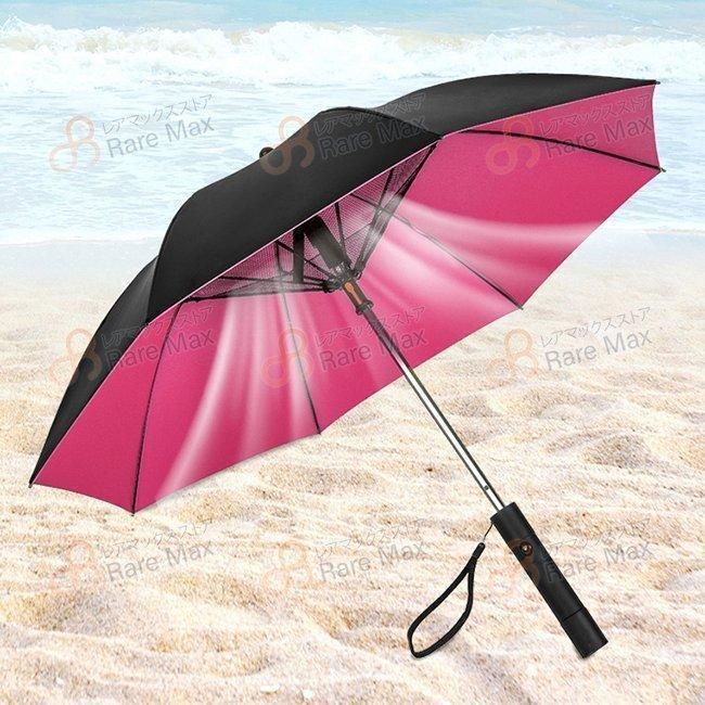 【扇風機機能】傘に搭載された専用の扇風機から吹き降りてくる風が首や頭などに当たり涼しくて快適です。傘にこもった空気を扇風機で追い出し、まるで木陰にいる涼しさに感じられます。
