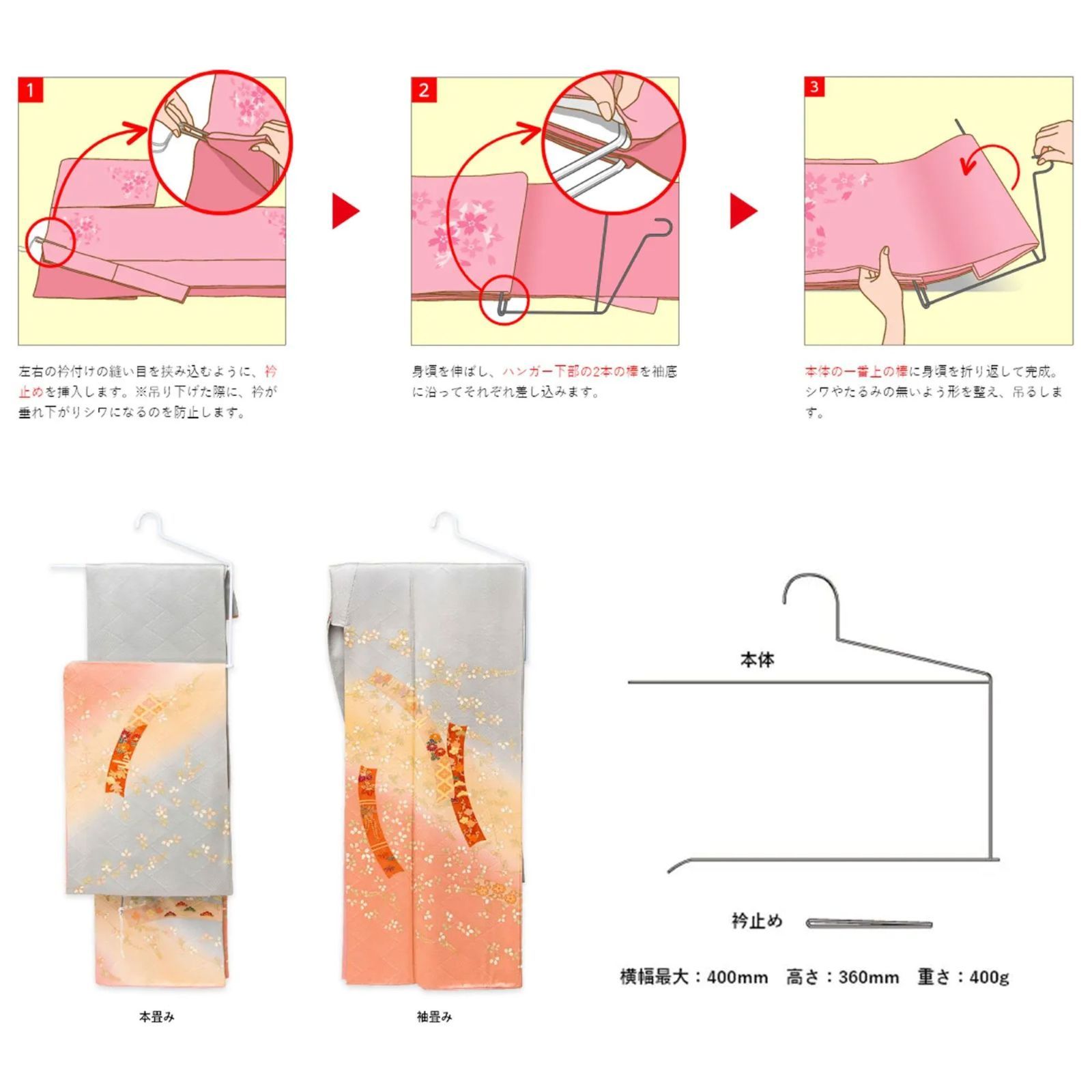 つる子さん 着物ハンガー 3箱3本入 和装ハンガー 衿止め付 白 クローゼット 簡単収納 吊り下げ収納 シワ防止 礼装 WWW_GLOBALQUALITYIMPORTS_COM