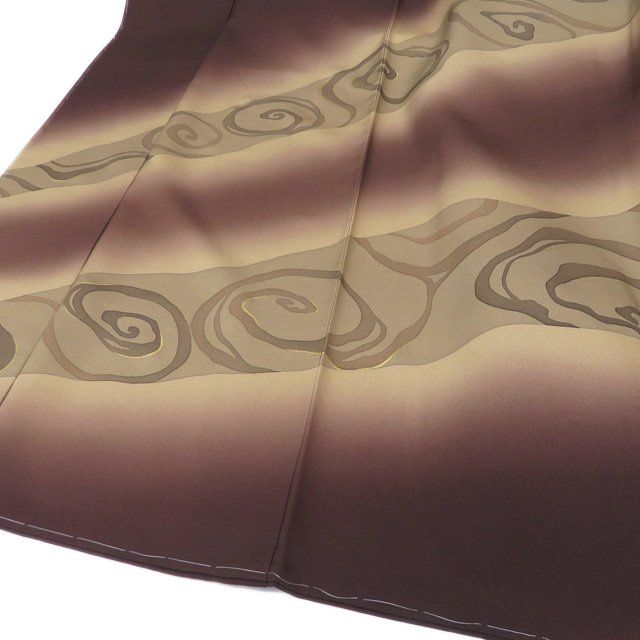 訪問着 着物 正絹 袷 フォーマル 流水模様 暈し 焦茶色 茶系色 身丈167.5cm 裄68cm L トール きもの北條 A1278-4 WWW_GLOBALQUALITYIMPORTS_COM