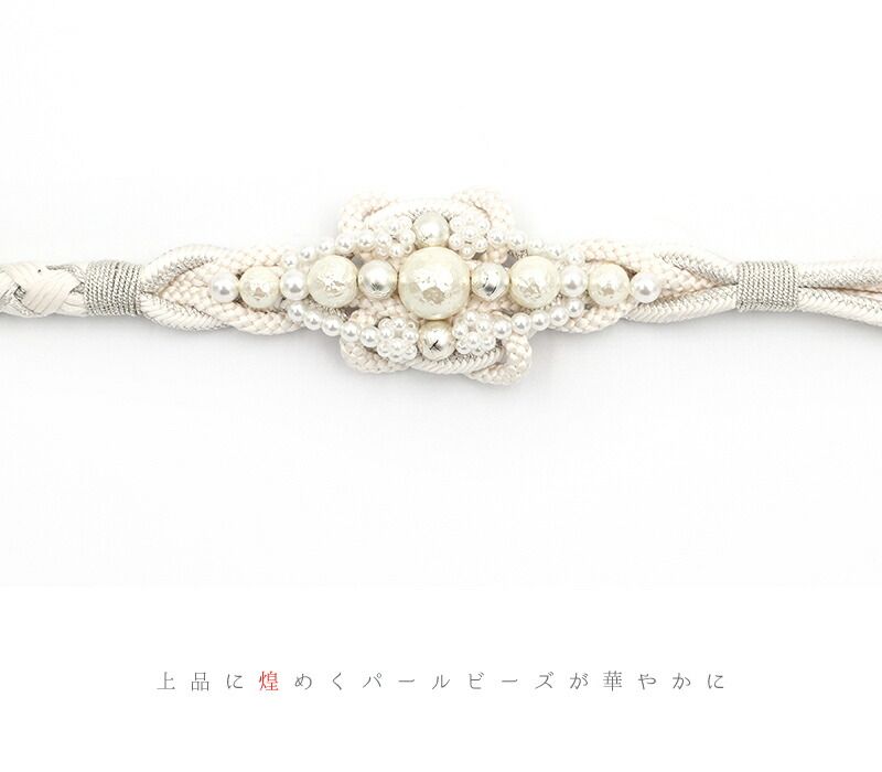 帯締め 振袖用 飾り紐 長尺 Lサイズ 正絹 成人式 白 銀 パール ビーズ 丸組紐 翠嵐工房 フォーマル セミフォーマル 礼 No.10-6822の検索結果