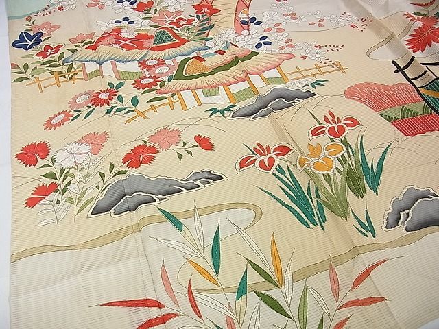 平和屋本店 夏物 アンティーク 大正ロマン 振袖 絽 駒刺繍 渡橋風景花文 金彩 DZAA1188kh4の検索結果