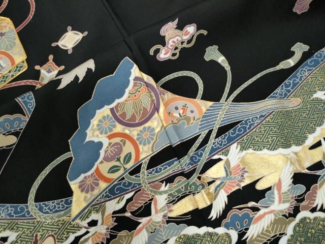 平和屋着物 豪華黒留袖 駒刺繍 文箱飛鶴扇御所車浜松花唐草文 金彩 正絹 CAAW7715ycの検索結果