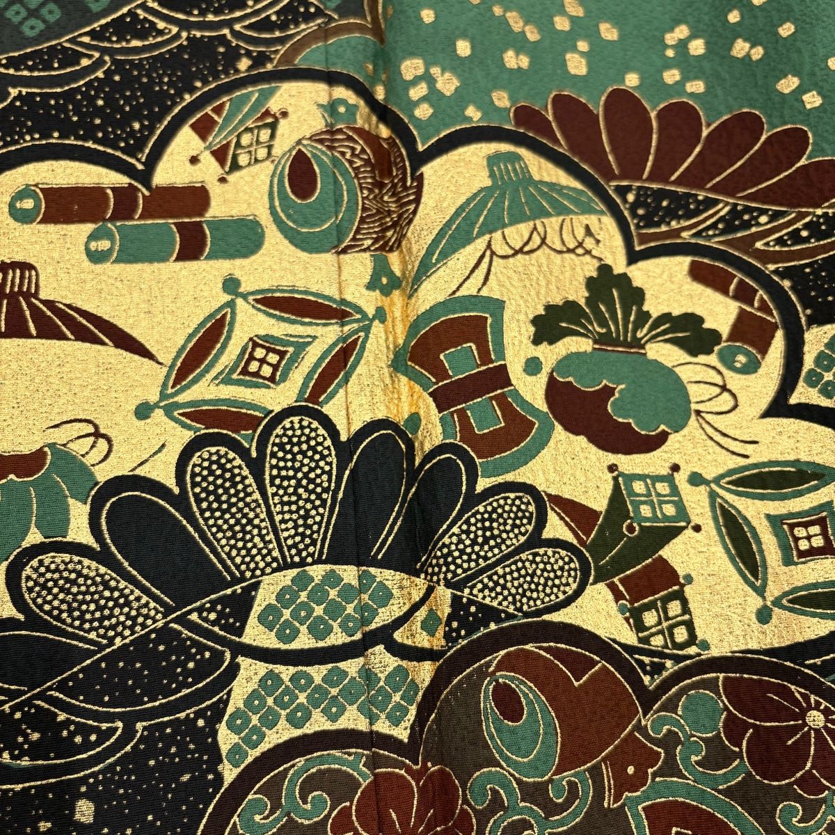 振袖 身丈156cm 裄丈64cm M 袷 笠松 宝尽くし 金彩 染め分け 黒 正絹 秀品の検索結果