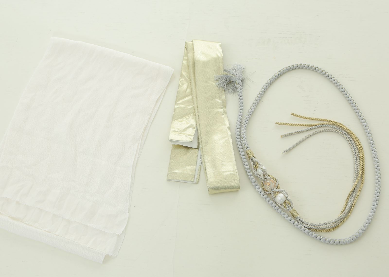 帯締め 振袖用 成人式 振袖 花飾り フェイクパール 装飾飾り 金糸 銀系 白 くすみ 帯〆