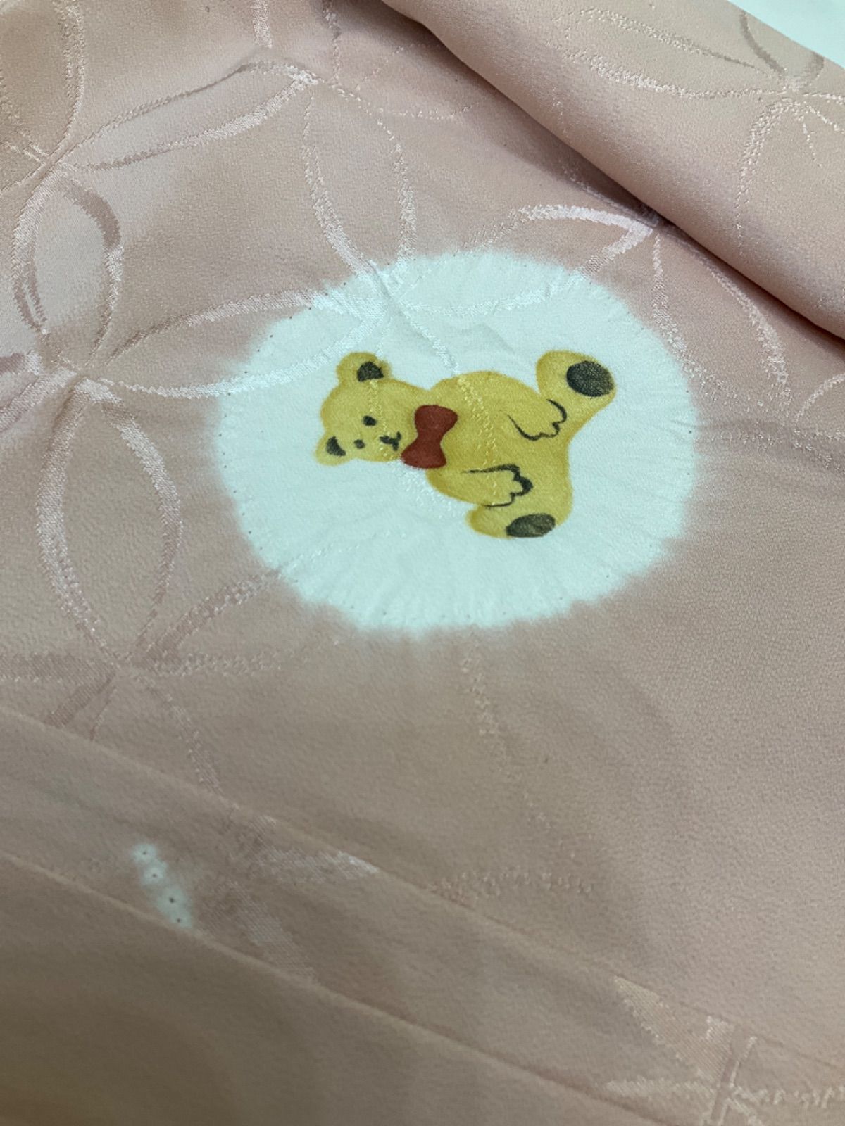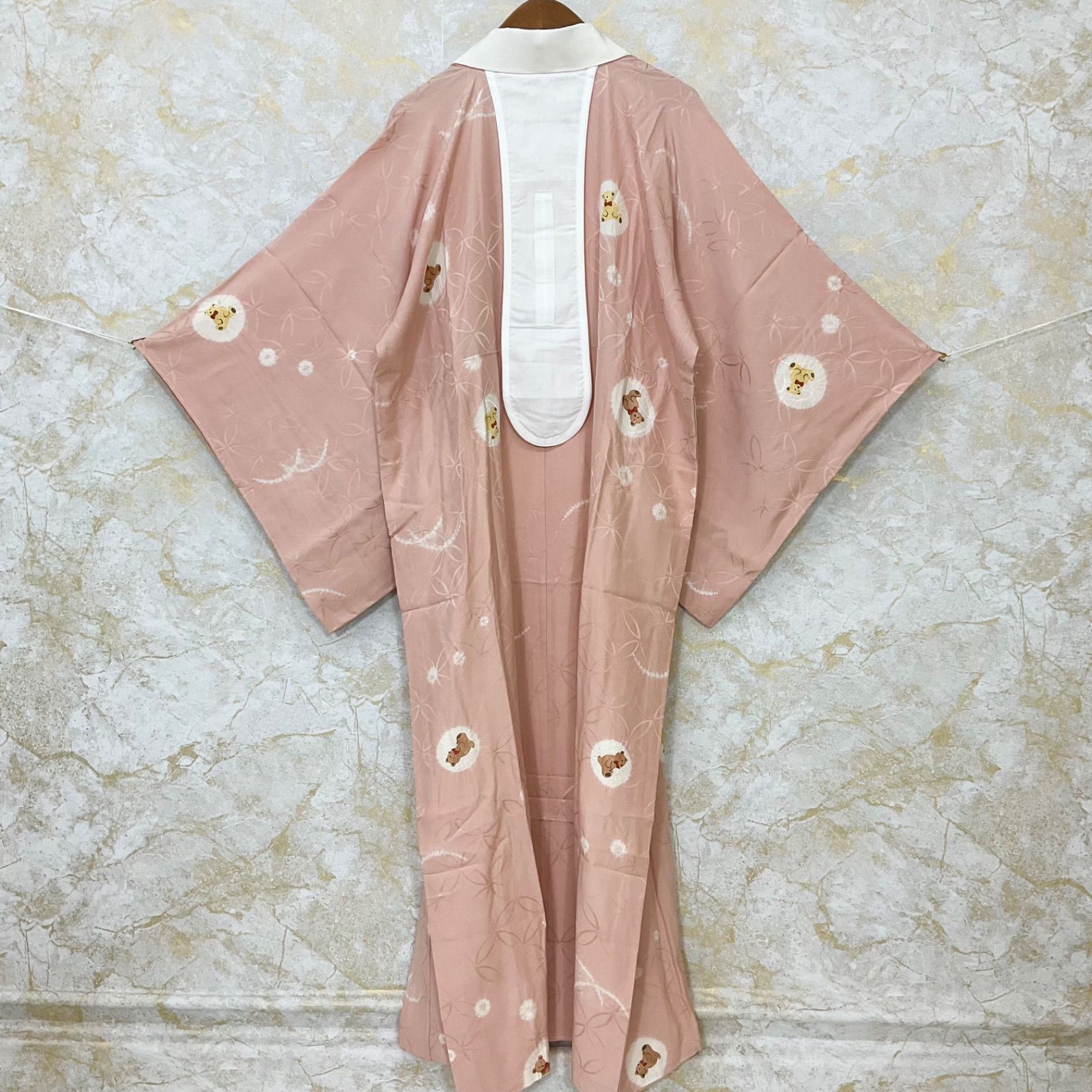 kimono one 同然 長襦袢 テディベア 熊 苺ミルク色 可愛らしい熊模様 絞り 白半衿付 仕付け糸付き 単衣 居敷当て付き 衣紋抜き付き ガード加工 ソフトガード 裄67肩丈134 小紋紬附下訪問着留袖袷単衣夏着物 K1179 WWW_GLOBALQUALITYIMPORTS_COM