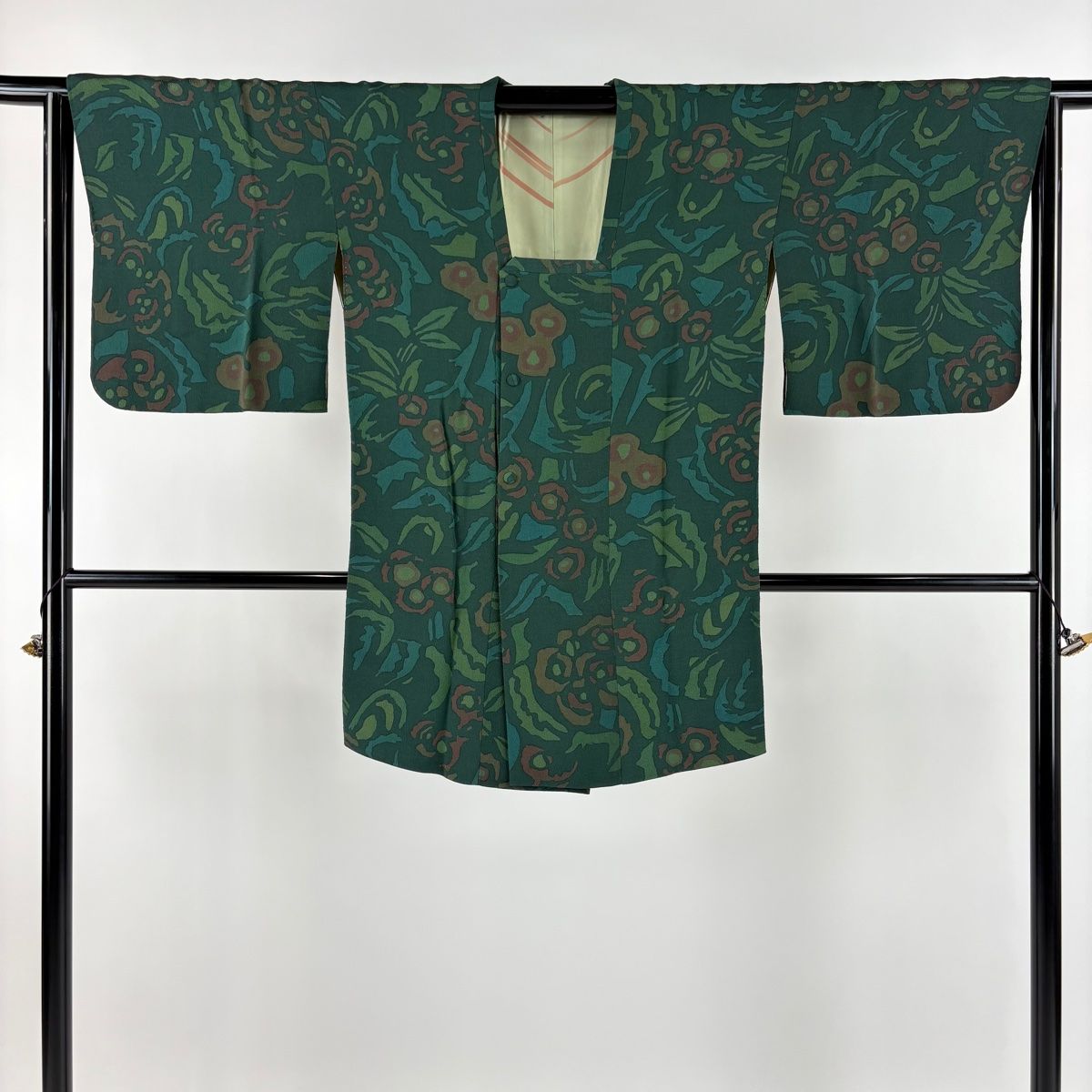 道行 身丈89cm 裄丈64.5cm M 和装コート 角衿 草花 縮緬 深緑 正絹の検索結果