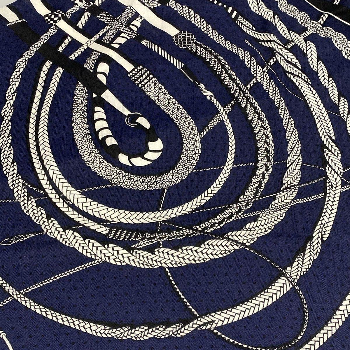 HERMES エルメス ストール ショール ショールカレ140 H243420S ネイビー×黒×白 Fouets et Badines カシミヤ シルク WWW_GLOBALQUALITYIMPORTS_COM