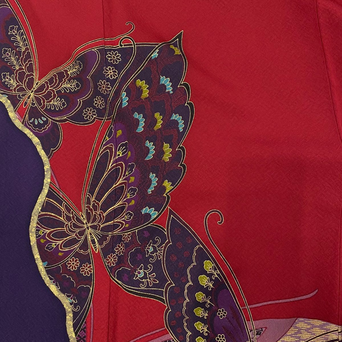 振袖 身丈162cm 裄丈67.5cm L 袷 蝶 草花 箔 金彩 えんじ色 正絹 秀品の検索結果