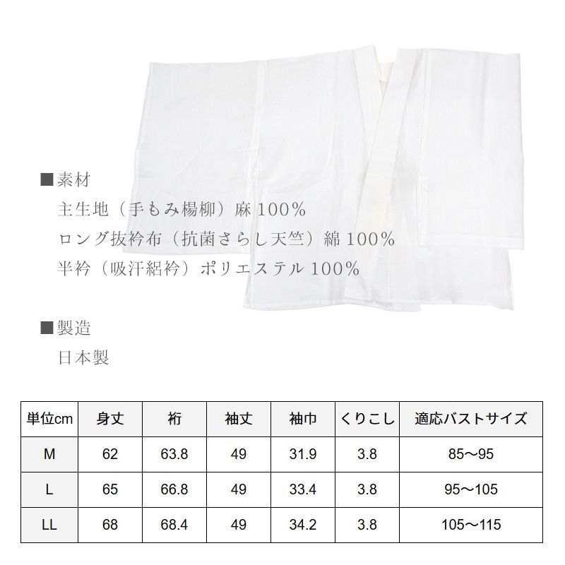 本麻手もみ楊柳 涼しい夏の半襦袢 着物 和装肌着 レディース 白 衣紋抜き 絽半襟付き 夏の半じゅばん〔M〕10012183 WWW_GLOBALQUALITYIMPORTS_COM