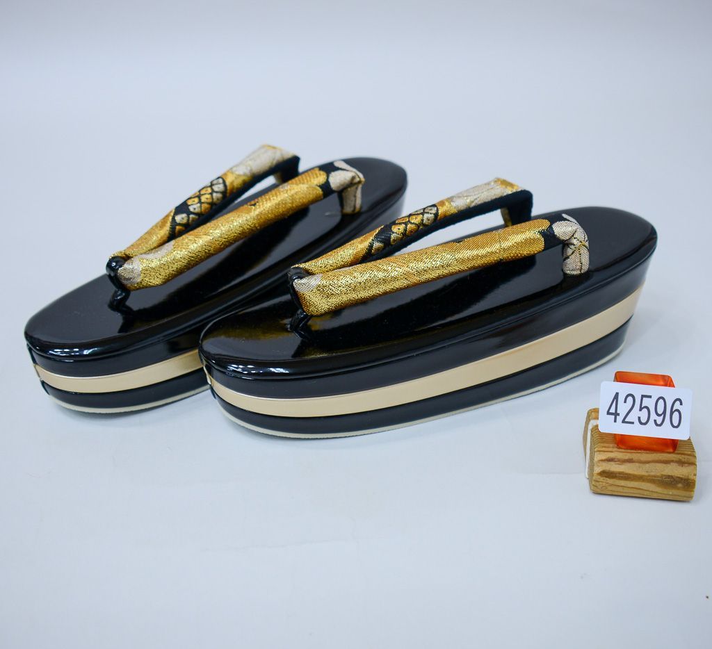 草履バッグセット 帯地 三段 フリーサイズ 24cm 適合足サイズ22.5cm~24.5cm 金色×黒色 振袖 成人式 結婚式 NO42596 WWW_GLOBALQUALITYIMPORTS_COM