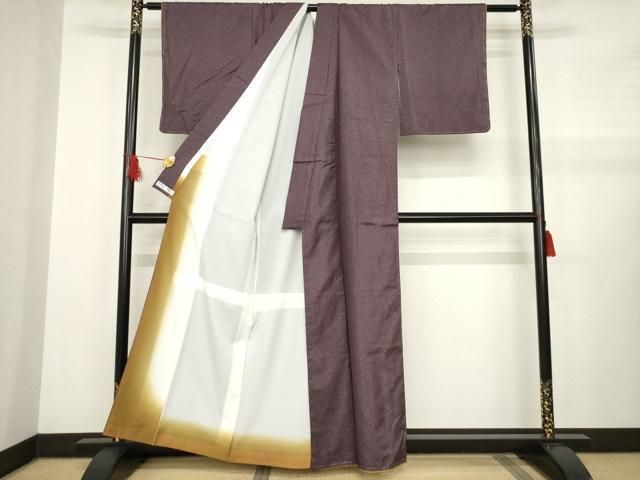 平和屋着物 上 お召 市松花文 黒×深紫色 DZAA9678kh5