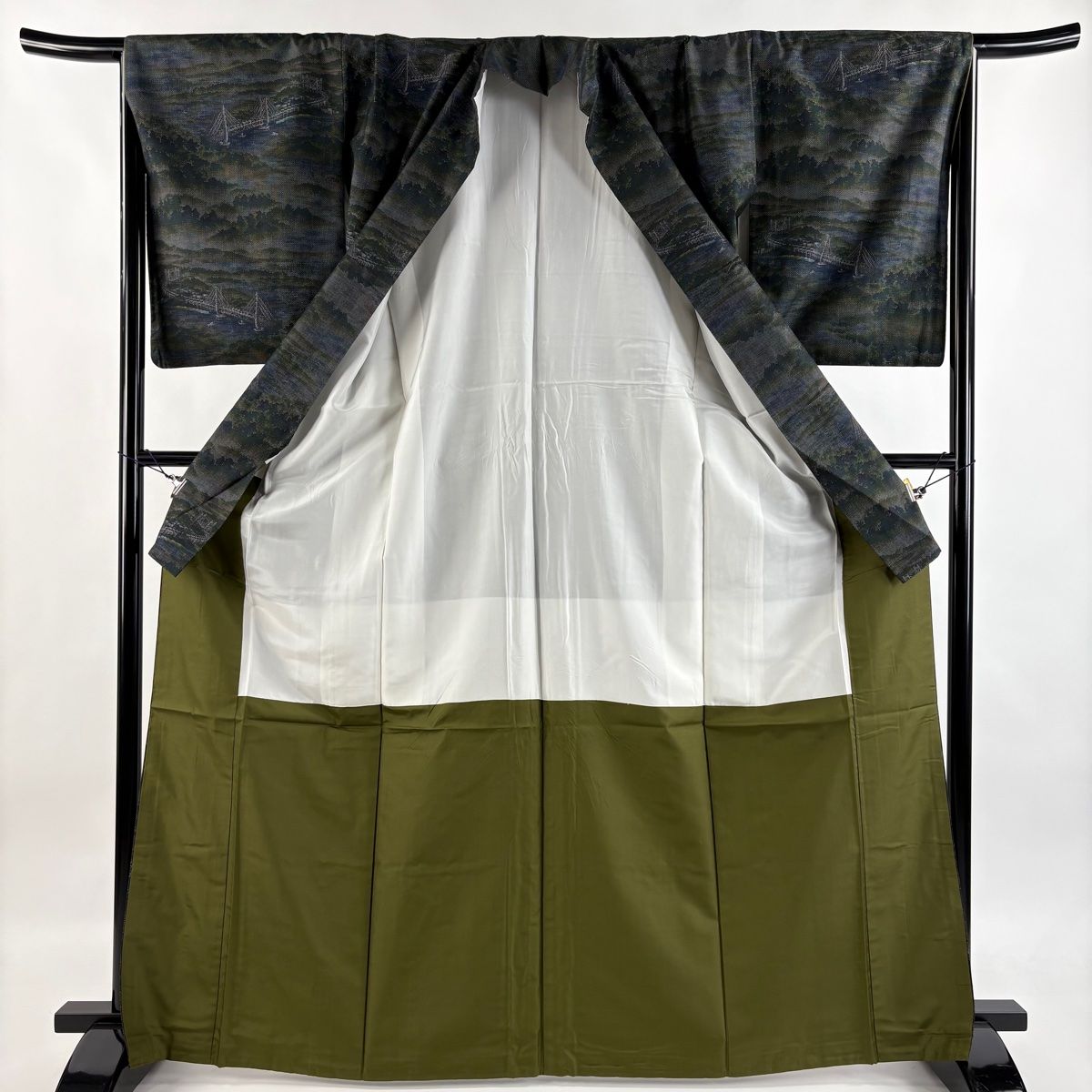 大島紬 身丈167cm 裄丈68cm L 袷 都喜ヱ門 証紙 瀬戸の景勝 深緑 正絹の検索結果