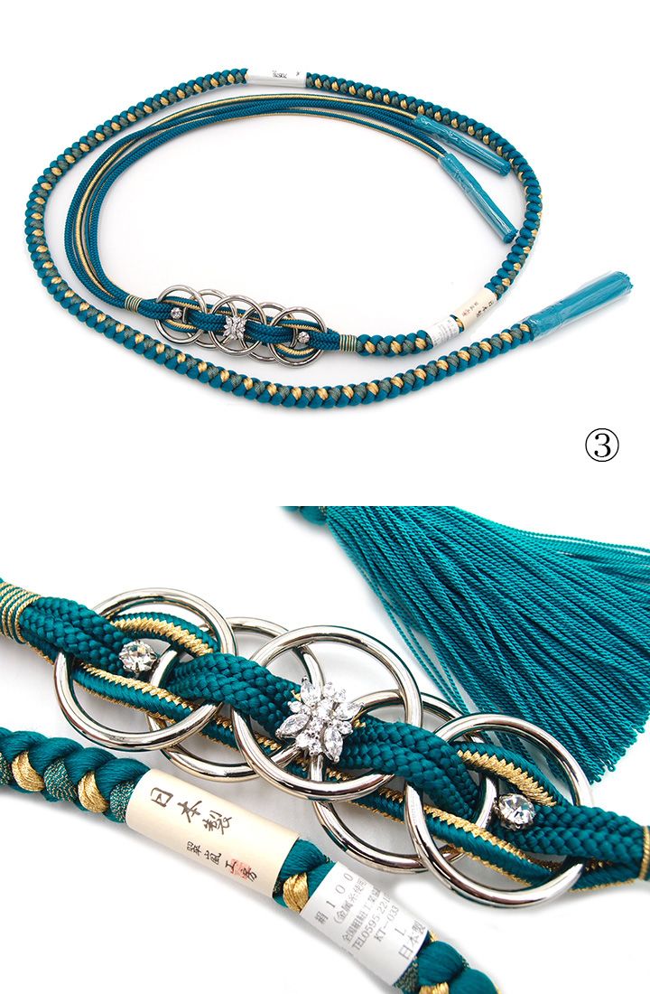 五嶋紐 三部紐 ガラス帯留め ターコイズ よろけ縞