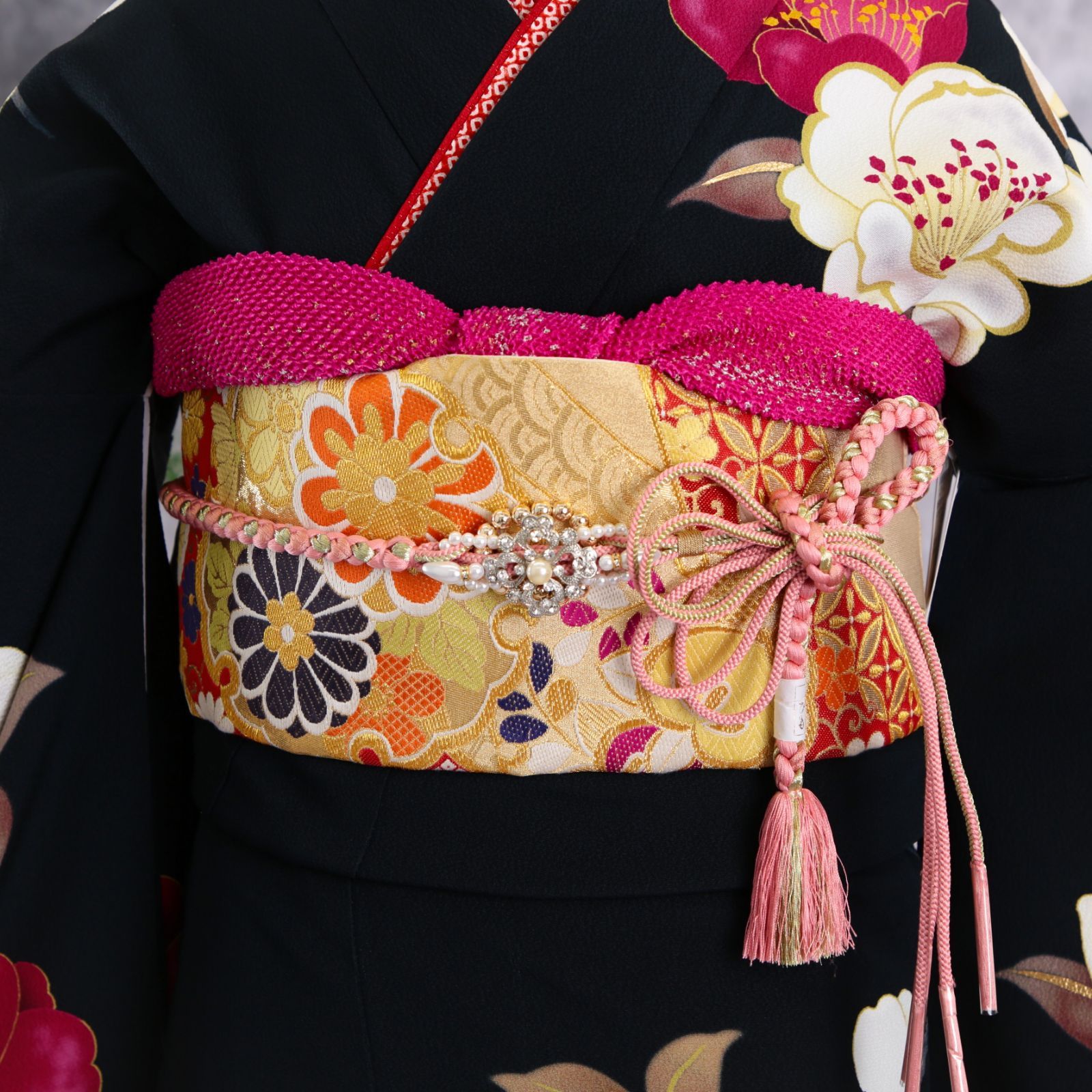 振袖フルセット 振袖セット 振袖 LLサイズ 黒×レトロ 成人式 着物 晴れ着 7点フルセット F-449の検索結果