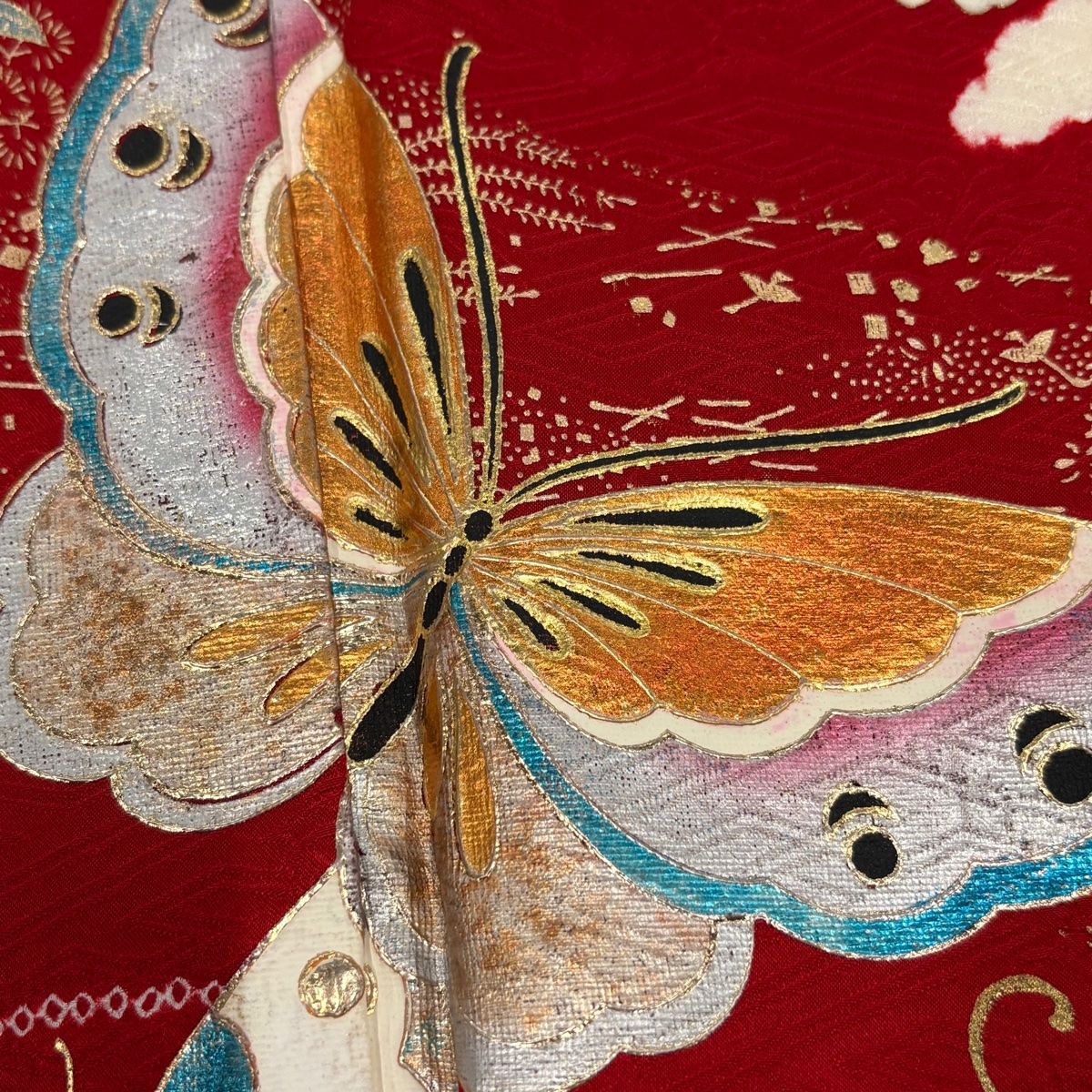 振袖 身丈163cm 裄丈65cm M 袷 蝶 桜 絞り 金彩 赤 正絹 秀品の検索結果